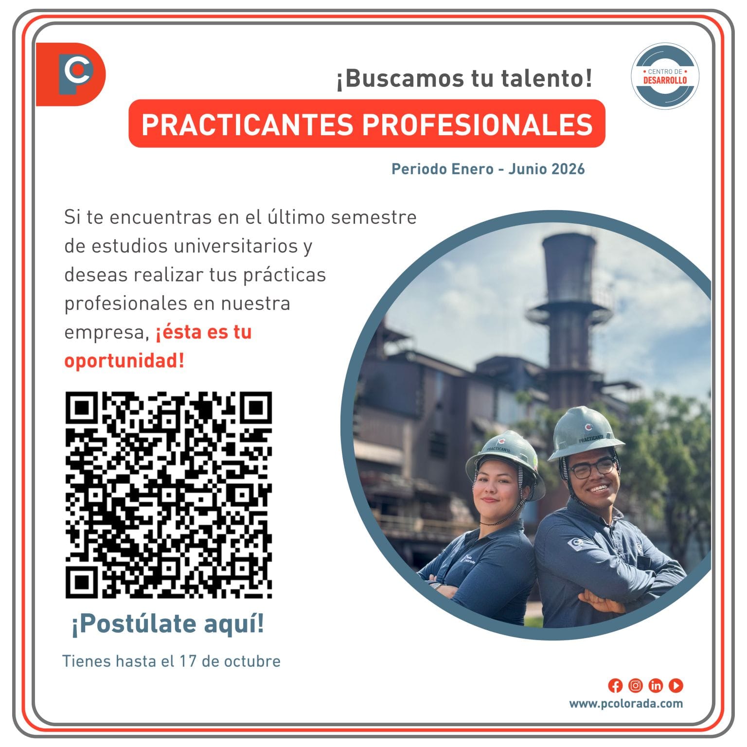 ¿Estás en el último semestre y deseas realizar tus prácticas en el periodo Enero - Junio 2026? ¡Esta es tu oportunidad!