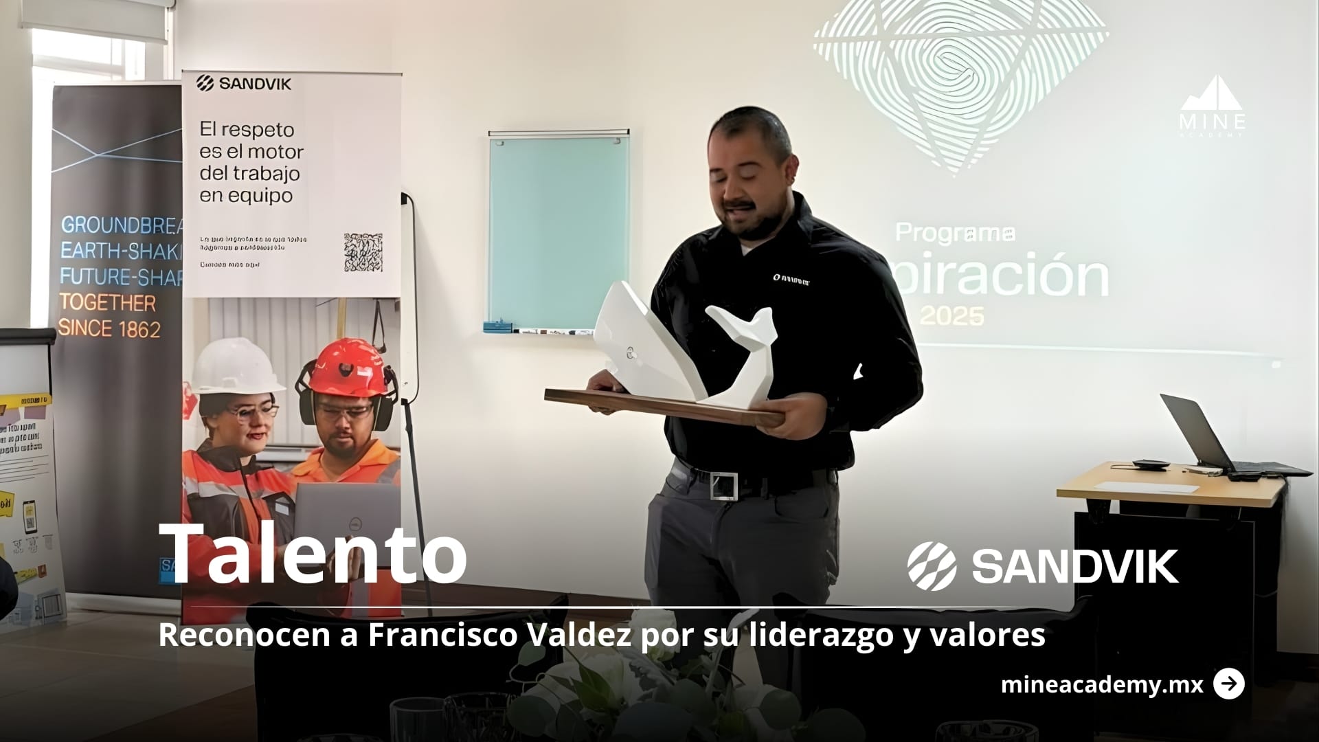 Como parte del reconocimiento recibió la pieza “Huella de Grandeza”, creada por el escultor Álvaro Cuevas, la cual simboliza su aportación diaria a Sandvik a través de la colaboración genuina, la mejora continua, la visión estratégica y la integridad.