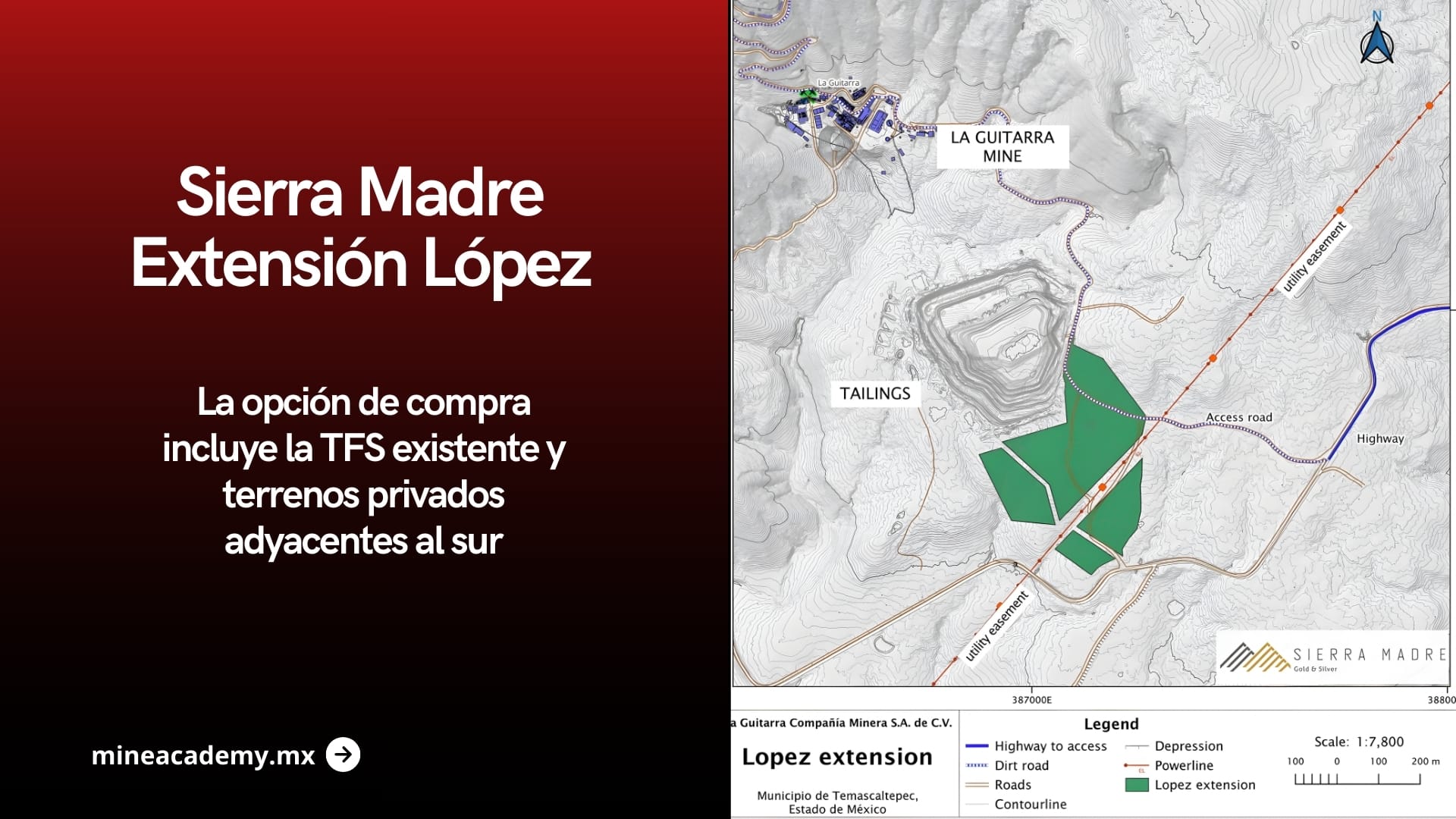 De manera paralela, la compañía firmó contratos de compraventa de terrenos que cubren el área del permiso Tlacotal y 33.1 hectáreas adicionales adyacentes. Asimismo, junto con sus operaciones existentes, Sierra Madre concretó un acuerdo de opción de compra sobre tierras privadas al suroeste de la actual instalación de depósito de relaves (TFS), además de los terrenos donde se ubica la TFS actual, conocidos como la Extensión López.